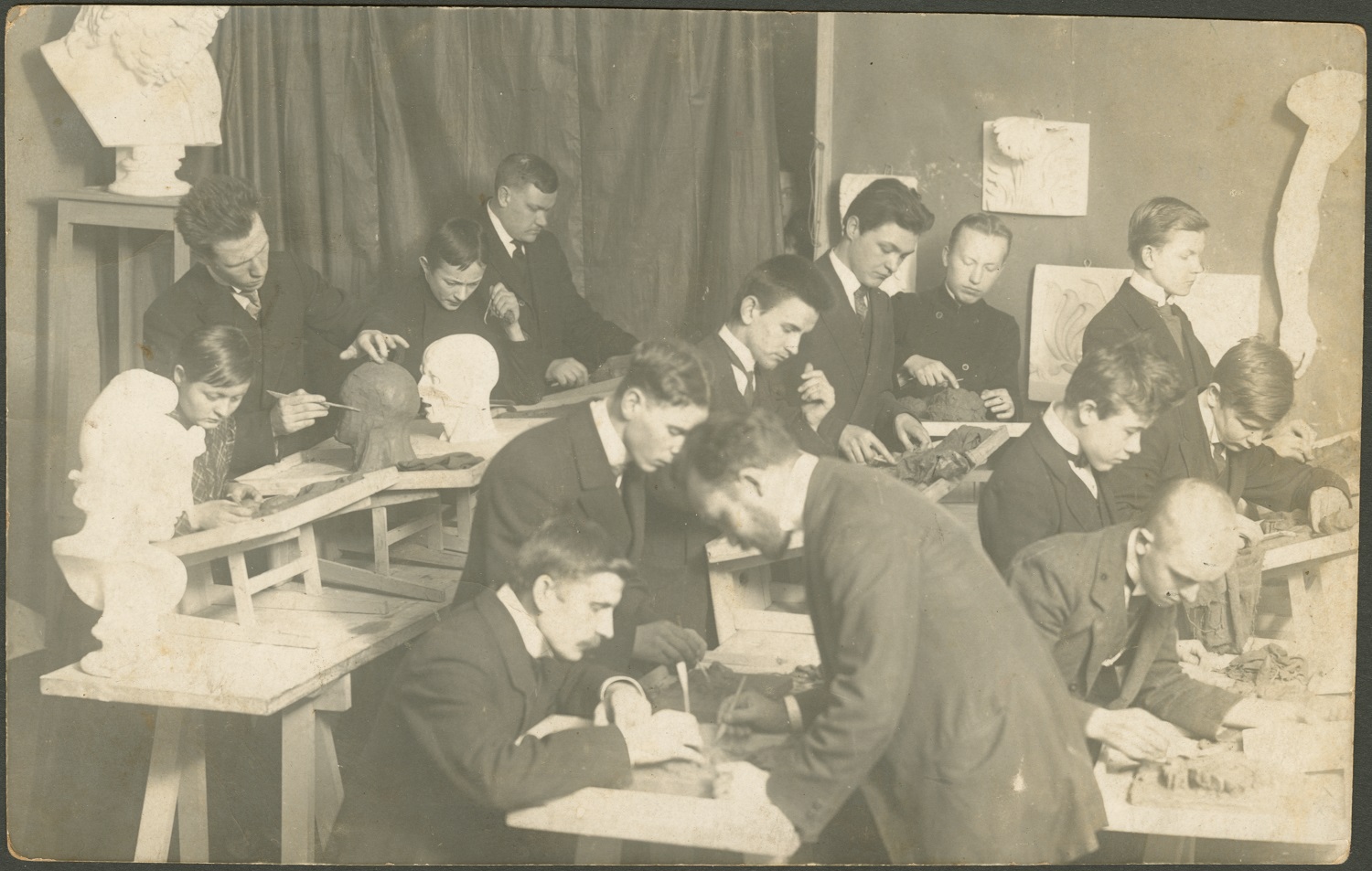 Fotokogus leidub haruldasi vaateid Eesti 20. sajandi alguse kunstielust. Tallinna Kunsttööstuskooli õpilaste fotol aastatest 1914‒1918 on teiste seas näha töötamas varalahkunud kunstnik Oskar Kallist.