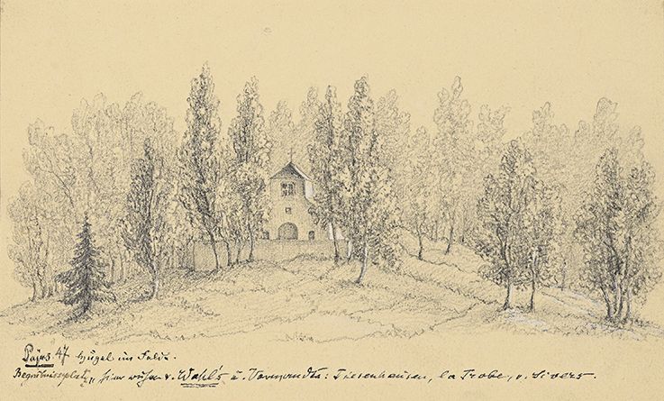 Sophie Julie von Ungern-Sternberg. Tagavere mõisa härrastemaja. 1851. Õli. (Eesti Kunstimuuseum) Maali saab näha Kumu kunstimuuseumi püsinäitusel „Identiteedimaastikud. Eesti kunst 1700–1945”.
