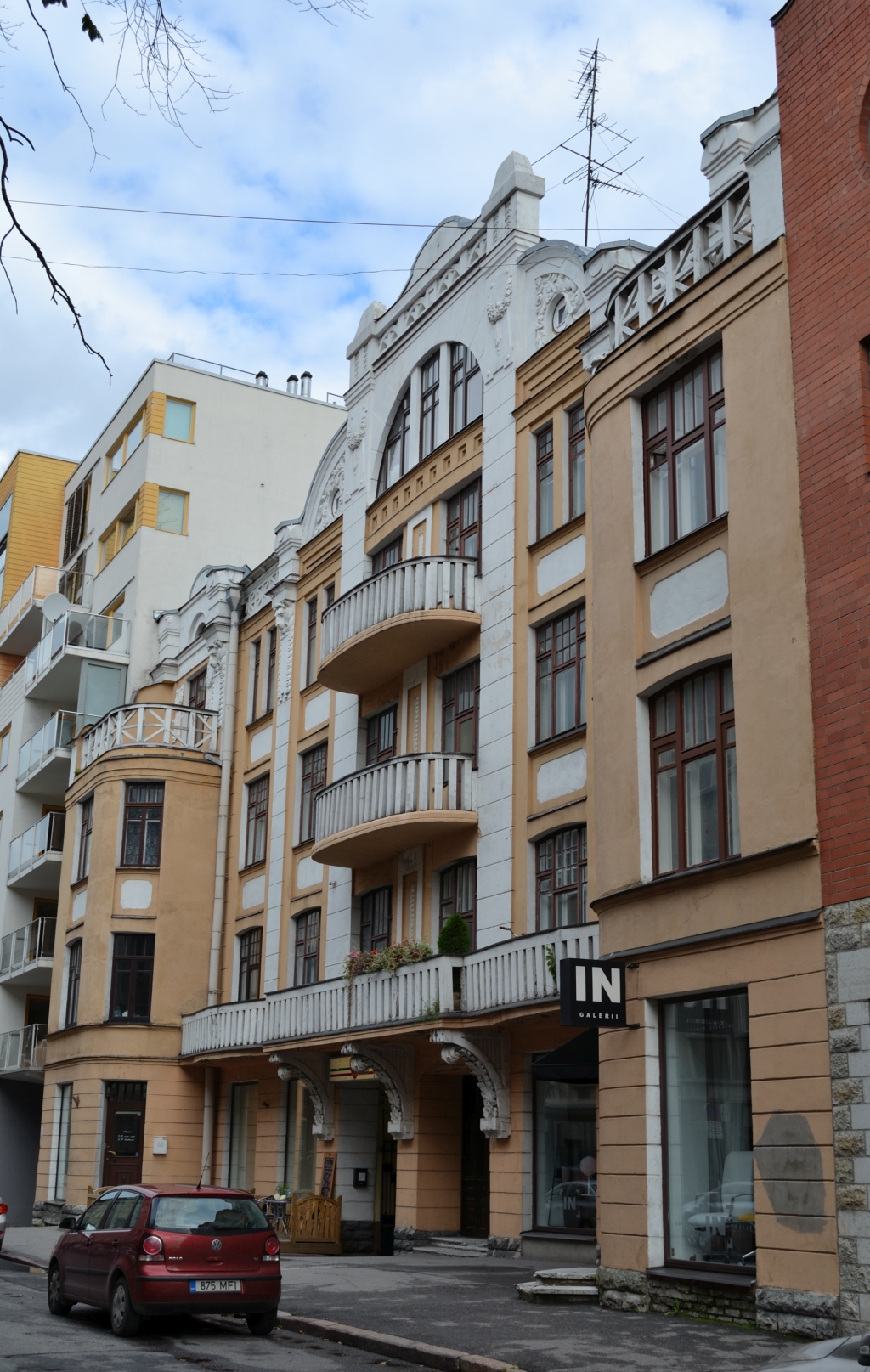 Neist tuntuimad on Jacques Rosenbaumi projekteeritud elamus Roosikrantsi 15 ja Karl Burmani kavandatud majas Tatari 21b Tallinnas. Viimases elas ja töötas algul Burman ise (lisaks tegevusele arhitektina oli ta ju andekas akvarellist), seejärel tegutses Ants Laikmaa ateljeekool, hiljem, nõukogude aastatel, kasutas sama ateljeepinda aga graafik Märt Laarman.