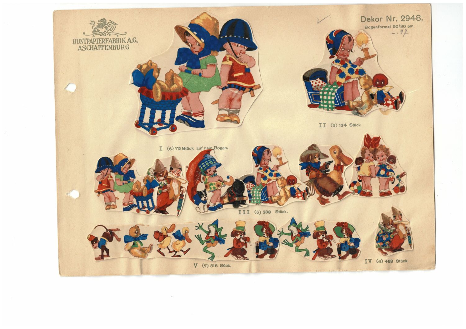 Lastedekooride trükipiltide näidised Wilhelm Schelleri Leipzigis asunud firma kataloogidest, mis Nikolai Langebrauni tööstusesse sisse osteti. Teiste trükipiltidega võrreldes on need küllaltki kallid, kuna on keerukad ja kasutatud palju erinevaid värve.