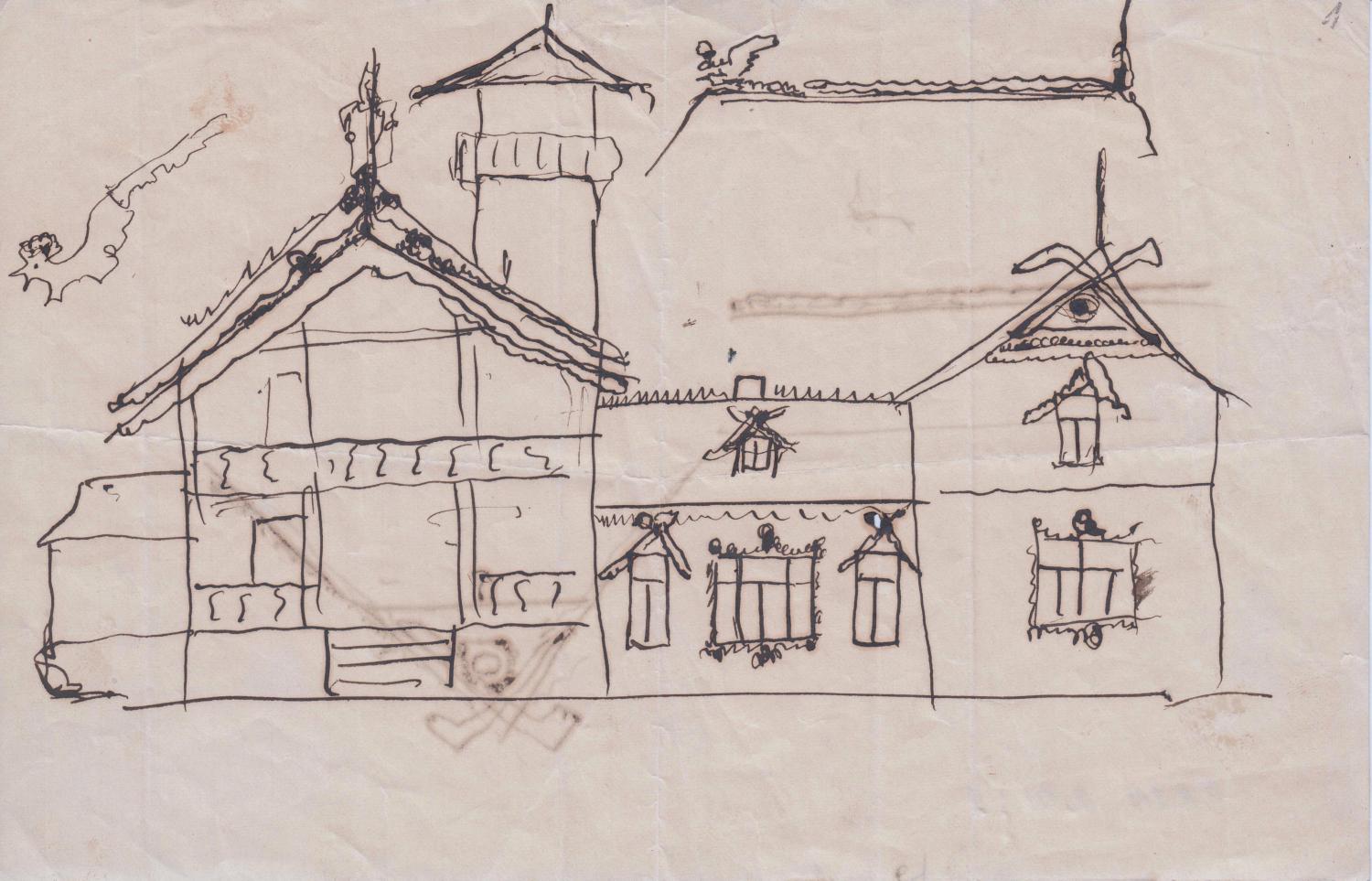 C. R. Jakobsoni visand uuest elumajast. Tänapäeval ammutavad paljud kodu kujundamisel inspiratsiooni arhitektuuri- ja sisustusajakirjadest, ent seda tehti ka juba 140 aastat tagasi: Jakobsoni kodust on leitud hulgaliselt ajalehti ja –kirju, kust ta maja ehitamiseks ideid sai. (Repro: C. R. Jakobsoni Talumuuseum)