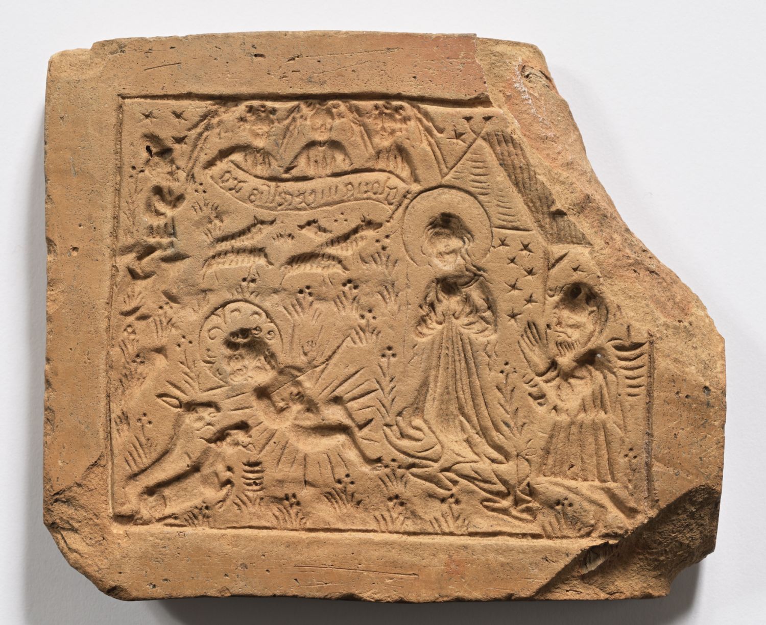 Nelinurksel keraamilisel pressvormil on kujutatud Kristuse sündi. Vastsündinud Kristuslaps kannab aupaistet ja lebab maapinnal valguskiires. Palves kummardavad tema poole ema Maarja ning Joosep. Jeesuse sünni kujutamine lähtub siin ilmutusest, mille püha Birgitta sai palverännul Petlemma aastatel 1371–1372. Ilmutuse kirjeldus mõjutas otseselt Kristuse sünni pildilist esitust keskaegses kunstis.