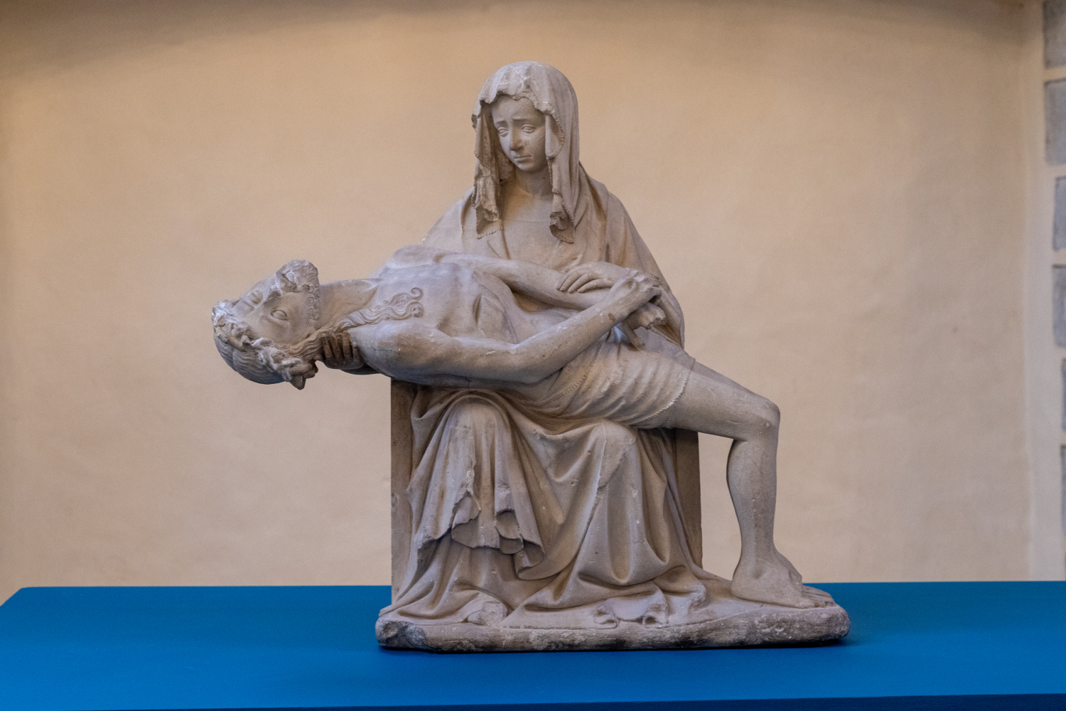 Pietà kujutab leinavat neitsi Maarjat hoidmas oma põlvedel surnud poega. Kõrgkeskajal välja kujunenud pilditüüp vahendas vaatajale Kristuse ja tema ema kannatusi ning kurbust. Emaarmastust ja neitsi Maarja valu edastav pilt vastandub sümboolselt pilditüübile, kus noor naine hoiab õnnelikult süles oma vastsündinud poega. Liivakivist skulptuur, mis oli algselt värvitud, asus keskajal ilmselt Riia Jaakobi kirikus. 18. sajandil viidi see Riia katoliku Valuema kirikusse. Alates 1940. aastatest kuulub teos Läti Ajaloomuuseumi kogusse.