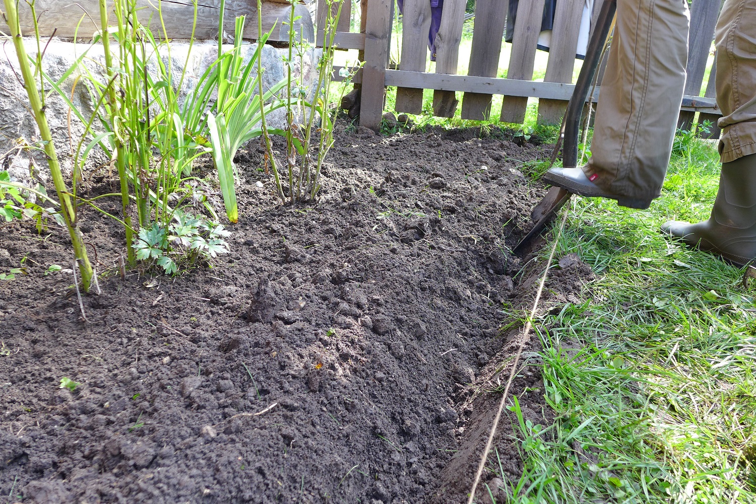 • Kaevake kogu peenraala vähemalt labidalehe sügavuselt läbi ja noppige välja kõik umbrohujuured. See on raske ja aeganõudev töö, aga tulemus on tunduvalt parem ja umbrohuvabam, kui papi- või ajalehepeenra tegemisel. Viimast võib kasutada siis, kui rajatav peenar on väga suur ja viljakat istutusmulda piisavalt.
